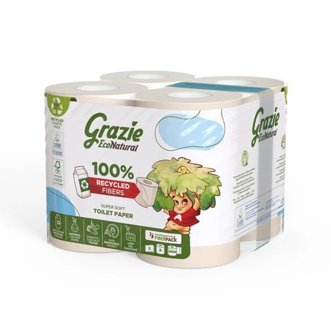 Grazie Natural Recycled toilet paper 3ply 4 rolls